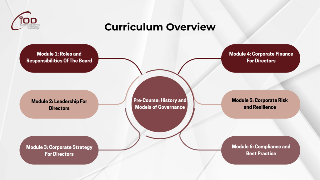 Each workshop focuses on a key topic relevant to current and aspiring leaders. These interactive sessions help participants sharpen their knowledge of corporate strategy, fiduciary responsibilities, and emerging governance challenges—while building real connections with Cambodia’s business leaders. It is a good way to prepare for the more intensive Directors Course – or just focus on one area of special interest to you.